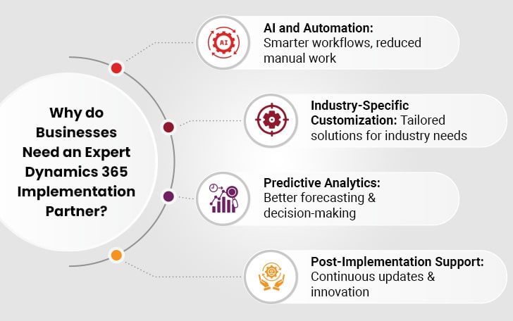 The transition to intelligent enterprises is not merely about implementing Microsoft Dynamics 365. It’s about partnering with the right Microsoft Dynamics 365 implementation partners. They help businesses maximize their investment. An effective D365 implementation enables companies to harness AI, automation, and data-driven insights to remain competitive.