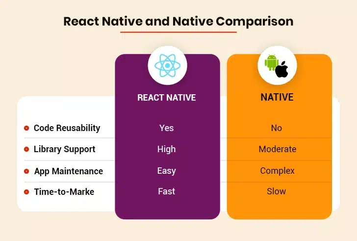 In the context of Native development, writing separate codebases is essential to building and deploying a single application on iOS and Android App Stores. Separate codebase programming increases the application development and deployment time. The delay in development and deployment time hinders your business from marketing applications before competitors and acquiring market attention before competitors. On the other hand, React Native’s code reusability and library support help accelerate application development. This rapid development contributes to reducing deployment time and generating quick revenue opportunities in a minimal duration.